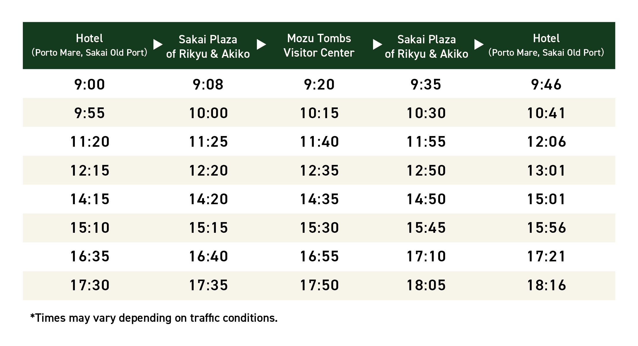 Just a 5-minute walk from our hotel, the drop-off area of Dorsett by Agora Osaka Sakai (Sakai Old Port – Porto Mare) is also one of the shuttle bus stops.